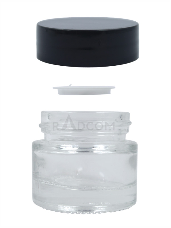10GM Clear Glass Jar with Plastic White and Black Cap with Inner Lid\r\nThis 10GM clear glass jar offers a clean and simple design, ideal for a wide range of uses, including cosmetics, skincare, and food products. The transparent glass allows for easy visibility of the contents, while the plastic white and black cap, complete with an inner lid, ensures a secure seal and prevents leakage. Perfect for both retail and personal use, this jar combines functionality with an aesthetic appeal.
