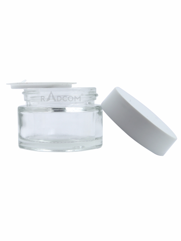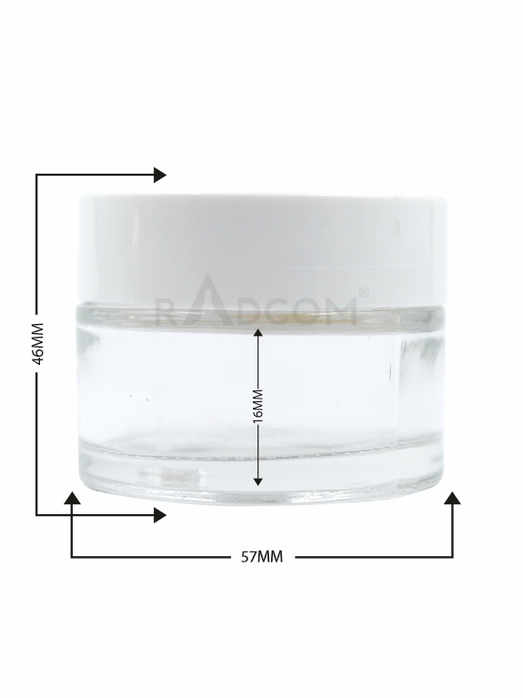50GM Clear Glass Jar with Plastic White and Black Cap and Inner Lid\r\nThis 50GM clear glass jar is the perfect choice for packaging a variety of skincare, cosmetic, and personal care products. Its transparent glass provides an elegant display, making it easy to showcase the product inside. The jar features a durable white and black plastic screw cap, complemented by an inner lid to provide an airtight, leak-proof seal. Ideal for creams, lotions, balms, and other formulations, this jar offers both practicality and visual appeal.
