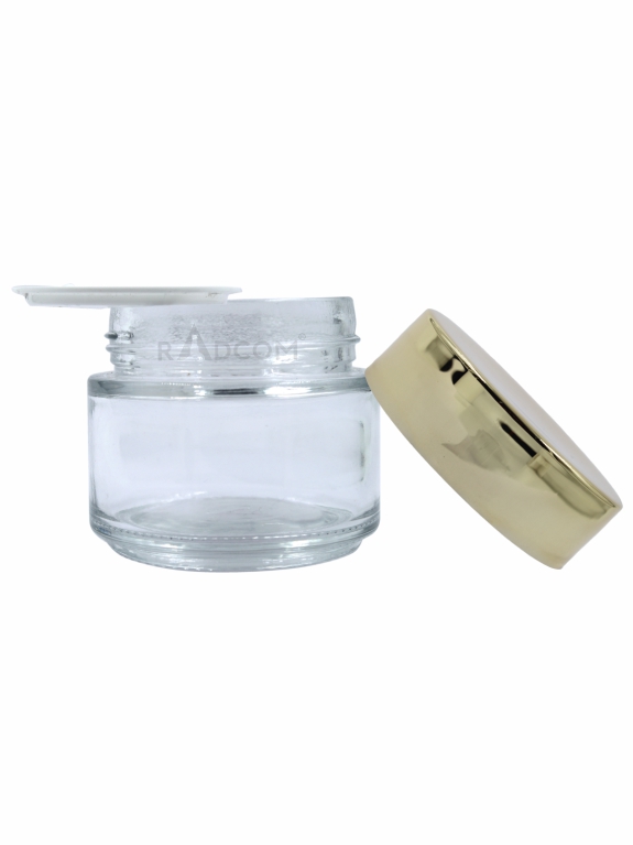 100GM Frosted Shine Jar with Plastic Gold, Silver & Matt Silver UV Cap and Inner Lid\r\nThis 100GM frosted shine jar combines elegance and practicality, making it perfect for packaging your premium skincare or cosmetic products. The frosted glass finish offers a refined matte appearance while providing subtle protection for light-sensitive contents. With UV-coated plastic caps in Gold, Silver, and Matt Silver, this jar enhances your product\'s aesthetic while ensuring protection from harmful UV rays. An inner lid guarantees an airtight seal to maintain product freshness and prevent leaks, making it ideal for creams, balms, and other luxurious formulations.