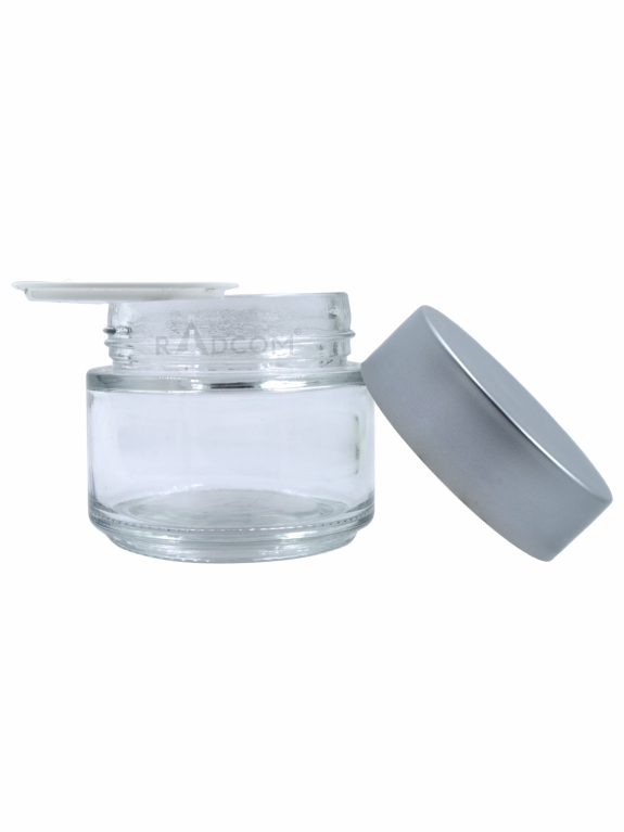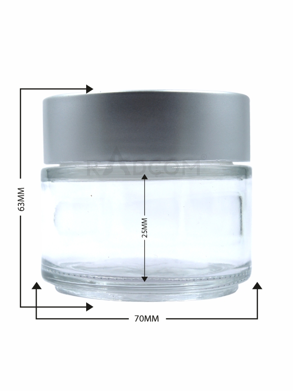 100GM Glass Jar - Clear-With Plastic Matt Silver Uv Cap With Inner Lid